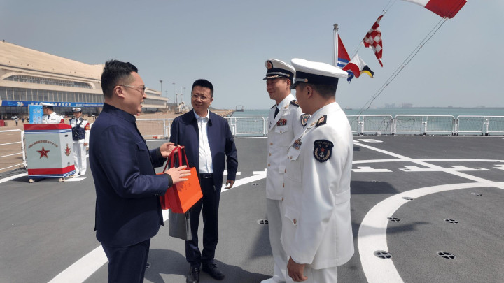{jz:field.toptypename/}2025年4月23日海军节,人民海军成立76周年纪念日。在时光带领下,天津市河西区爱国拥军促进会30余名成员登上被誉为“海上生命之舟”的“和平方舟号”医疗船,将2000余份专属伴手礼送到全体船员手中,向以仁心为帆、用医术架桥的深蓝卫士致敬,那一刻拥军大爱瞬间升华为永恒记忆。