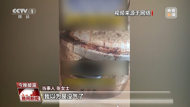 当事人张女士:高压锅要排气,它的小红盖掉下去了,我以为是没气了,但是它下头动了一下,我以为是开了呢,这么一碰,它就炸了,排气没排干净。