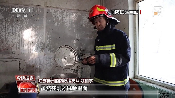 江苏扬州消防救援支队姚相宇:虽然在刚才试验里,高压锅也出现了向外排气、泄压的情况,但是因为它整个排气、泄压的量比较小,火的加热升压速度是比较快的,最终,导致整个锅体出现物理型爆炸。