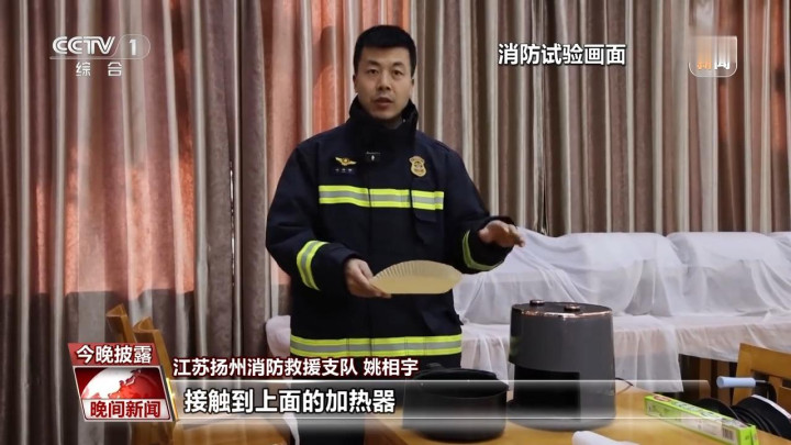 江苏扬州消防救援支队姚相宇:空气炸锅的托盘垫纸质地都较轻,放置在空气炸锅里,在风扇的风力作用下可能会直接向上飘浮,接触到上面的加热器。