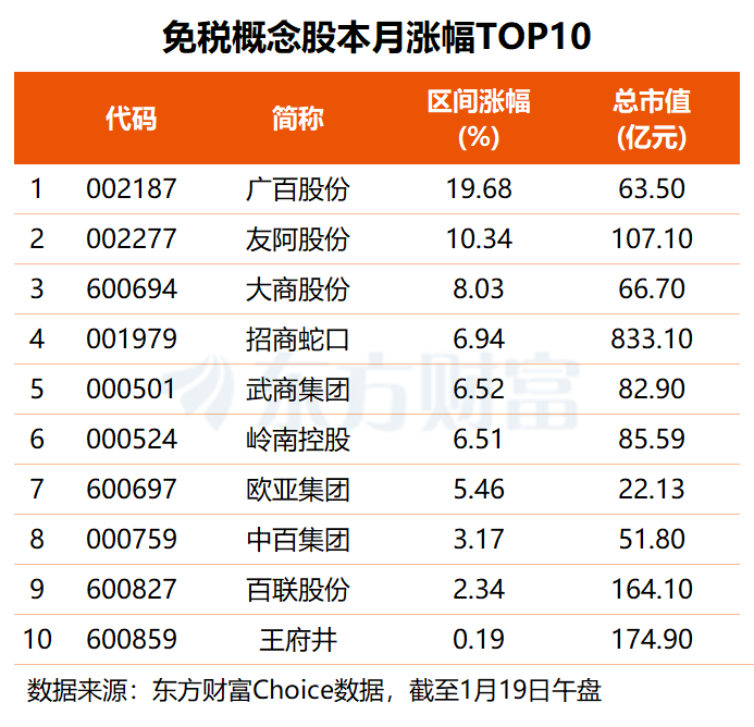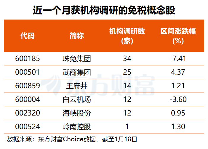 机构关注这些免税概念股