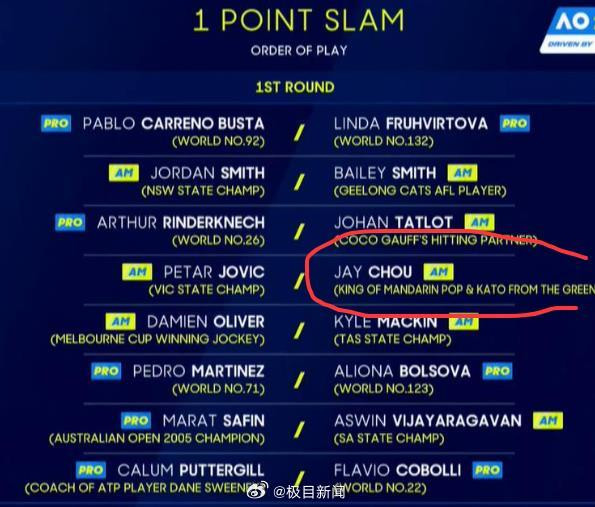 随后比赛开始,开云面对扎好马步的周杰伦,约维奇直接发出一记外角ACE,周杰伦动都还没来得及动一下,就惨遭淘汰。