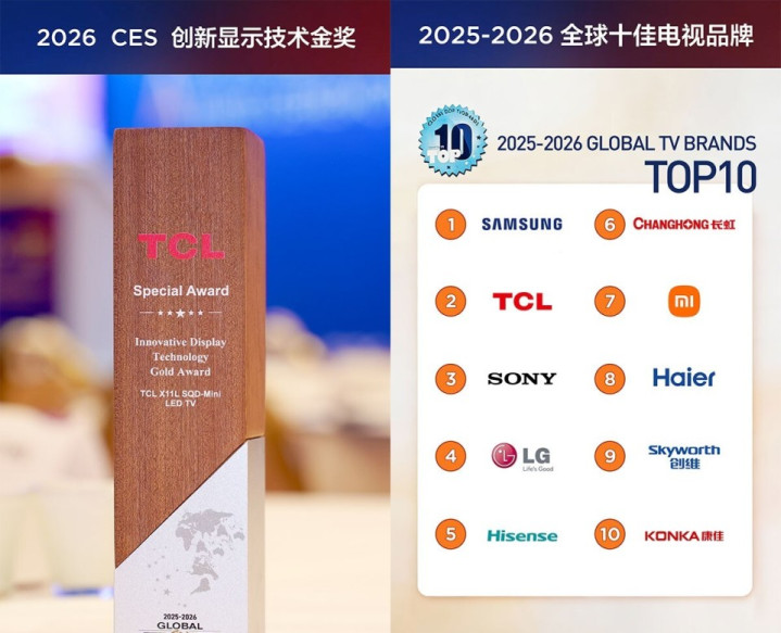 要知道该技术也是深得行业大咖青睐的画质天花板技术,不仅在 2026 CES 展上斩获创新显示技术金奖等多项重磅大奖,更助力TCL一举拿下CES全球电视品牌第二、中国第一的亮眼佳绩!