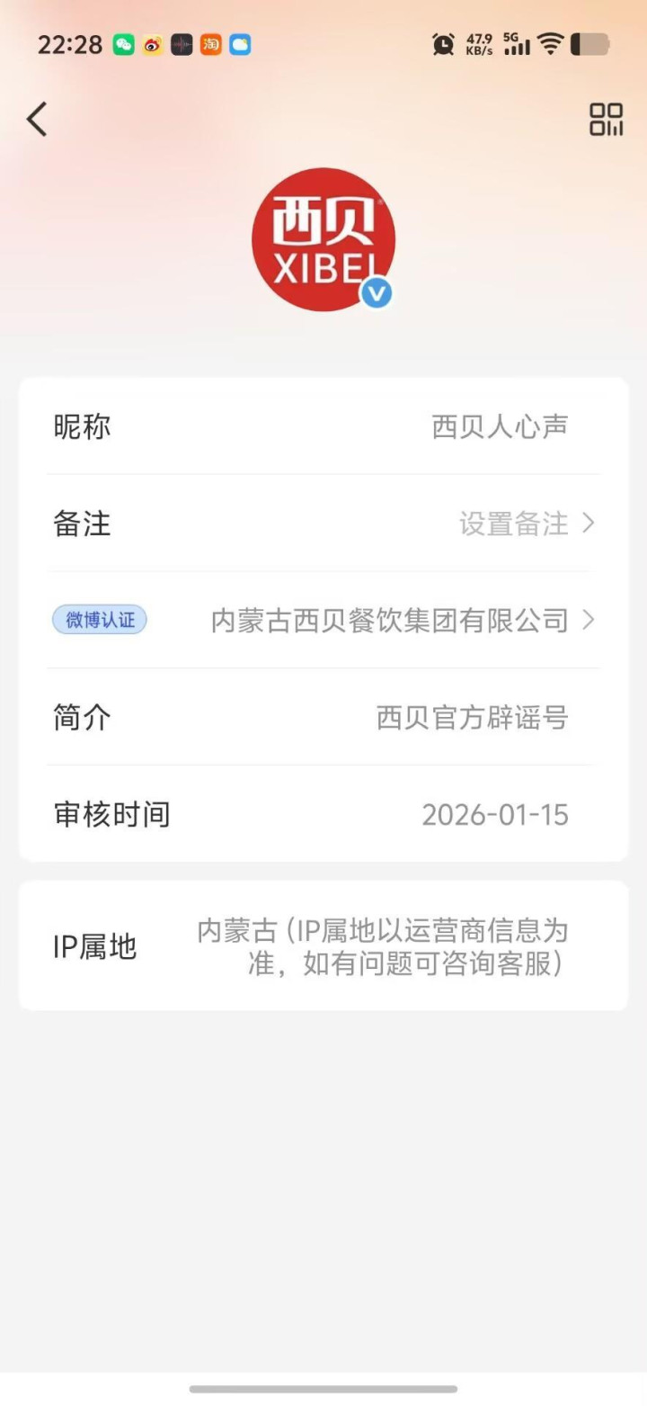 1月16日晚9时许,西贝创始人贾国龙通过“西贝人心声”账号发声,极目新闻记者注意到,该账号是由内蒙古西贝餐饮集团有限公司认证,开云app下载账号简介为“西贝官方辟谣号”,审核时间为1月15日。
