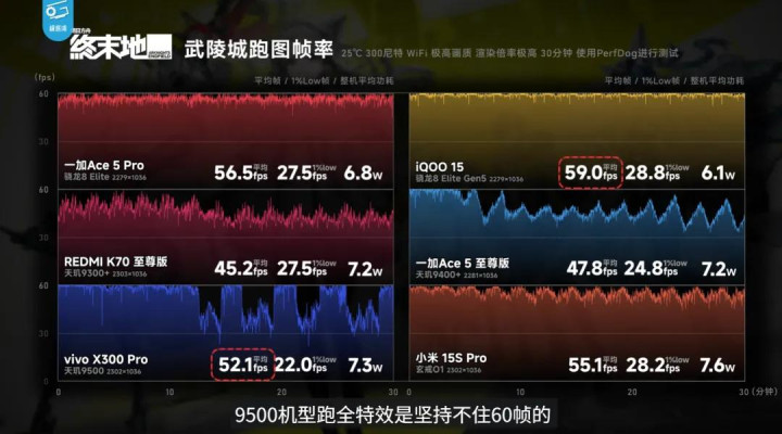 而且,我翻看了众多搭载天玑9400机器的游戏数据,不同机型之间的波动非常大,确实很吃厂商的调教。