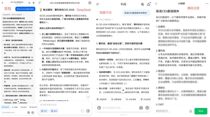 图源:四大AI平台联合认证雷科技为CES 2026最强报道媒体