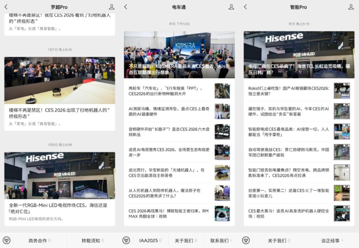 据不完全统计,雷科技CES报道团成员日均暴走2万步,一共输出85条内容(含39篇深度观察/高端访谈,35篇探展资讯/新品报道,11条探展Vlog/高管专访视频),图文内容超16万字,开云app官方下载一共收获超过500万+阅读/播放,得到数十家媒体转载,被腾讯新闻、网易、今日头条、百度、36kr、知乎、澎湃等垂直媒体作为核心内容推荐,多次登陆今日头条数码科技热榜、36kr热榜,被豆包/DeepSeek/元宝/文心等重点AI收录,且被多家券商机构用于研究消费电子行业的一手素材,完成了“史上内容最丰盛、最立体、最专业”的CES报道。