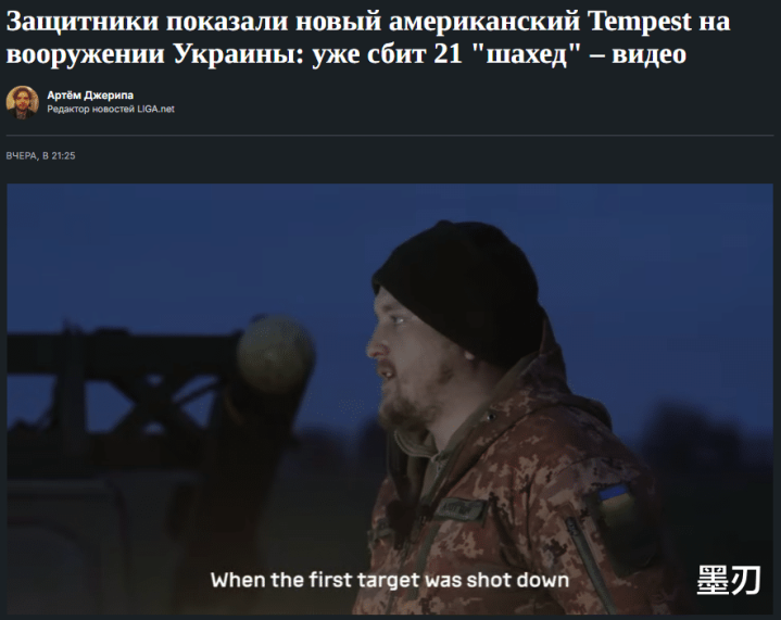 乌克兰空军近日公布了一段新型装备的宣传视频,视频中显示一款美制“暴风雨”(Tempest)防空系统已经正式投入战场,其操作员更在采访中明确表示,该系统自引进以来已成功击落了21架俄罗斯“沙赫德”自杀式无人机。